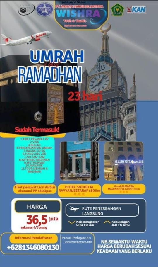 PT. Wisata Harun Sejahtera telah terdaftar resmi sebagai penyeleggara umrah resmi dengan nomor izin U. 509 Tahun 2020
